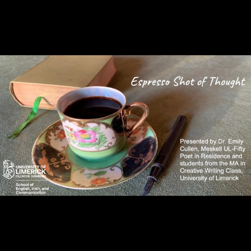 Espresso Shot of Thought is a video series focusing on poetry run by the Meskell UL-Fifty Poet in Residence, Emily Cullen. Various themes in poetry are explored in bitesize form. Geraldine looks at alliteration and musicality in poetry.