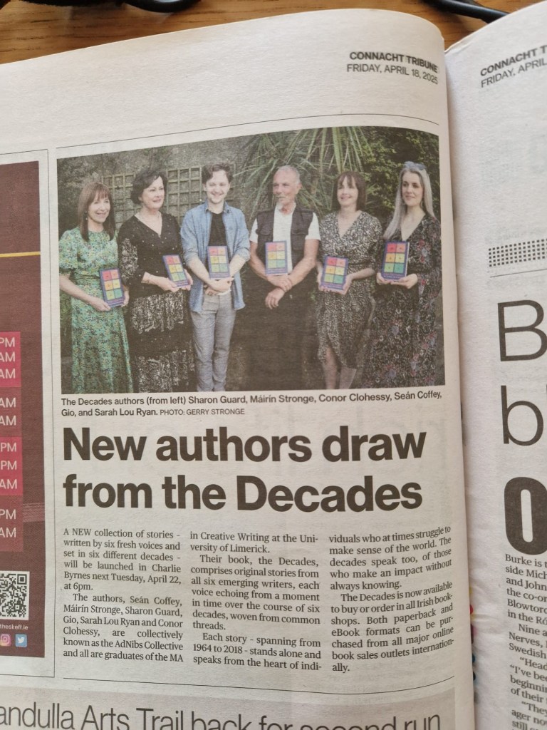 Published in April, 2025, this collection comprises six previously unpublished stories from six emerging Irish writers, each voice echoing from a moment in time over the course of six decades. Stories woven together from common threads: a priest, a house, the wild and windswept north west coast of Ireland. The kind of place where anything can happen. Each story stands alone, speaks from the heart of individual characters who at times struggle to make sense of the world. The Decades speaks too of those who make an impact without always knowing.